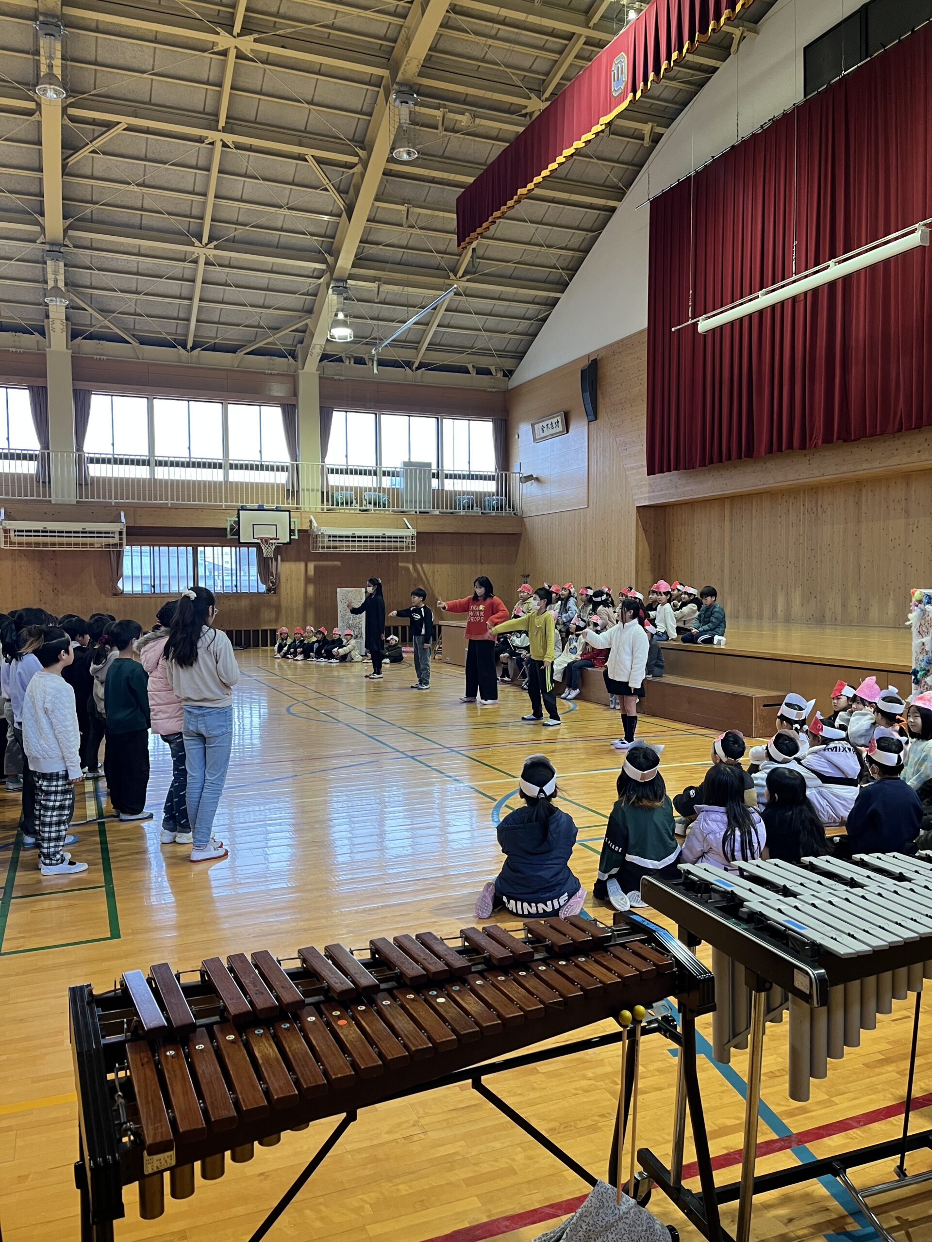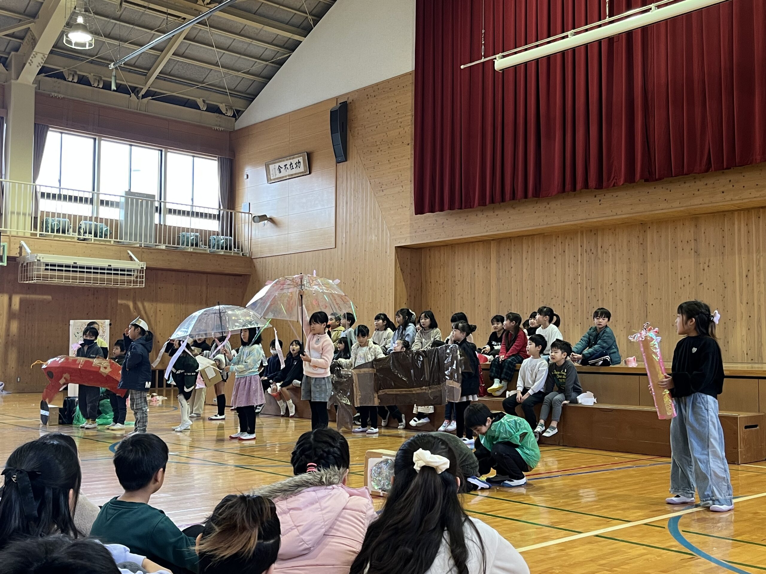 1月21日(水)全校児童と幼稚園児が集まり、音楽集会がありました。今回は2年生の発表でした。国語の教科書にものっている絵本「スイミー」の音楽劇を発表しました。感情あふれる演技と、元気な歌声が響く素敵な発表でした。12月に実施するはずでしたが、インフルエンザの流行による学年閉鎖で一度延期されました。それでも2年生の子どもたちは、長い練習期間を集中して乗り越えました。たくさんの2年生保護者の皆さんにもご来校いただき、大きく成長した子どもたちの姿を見ていただくことができました。あわせて音楽委員会の子どもたちも大活躍で、今月の歌を歌ったり、校歌を演奏したりして全校みんなで参加できるように集会を盛り上げていました。