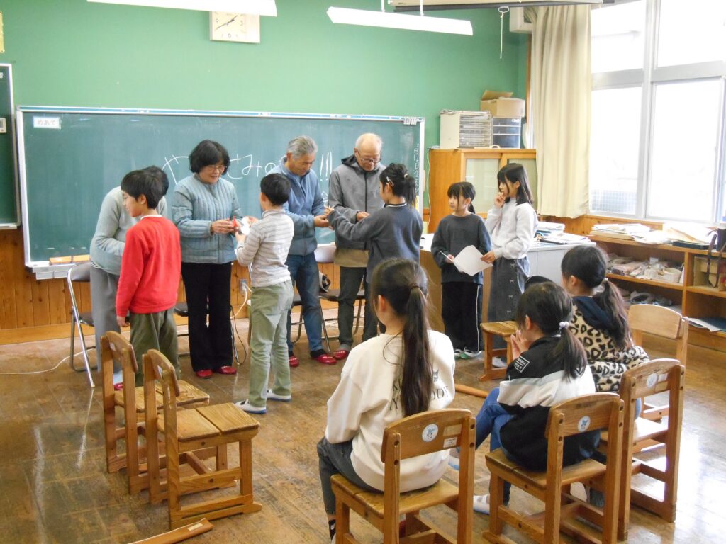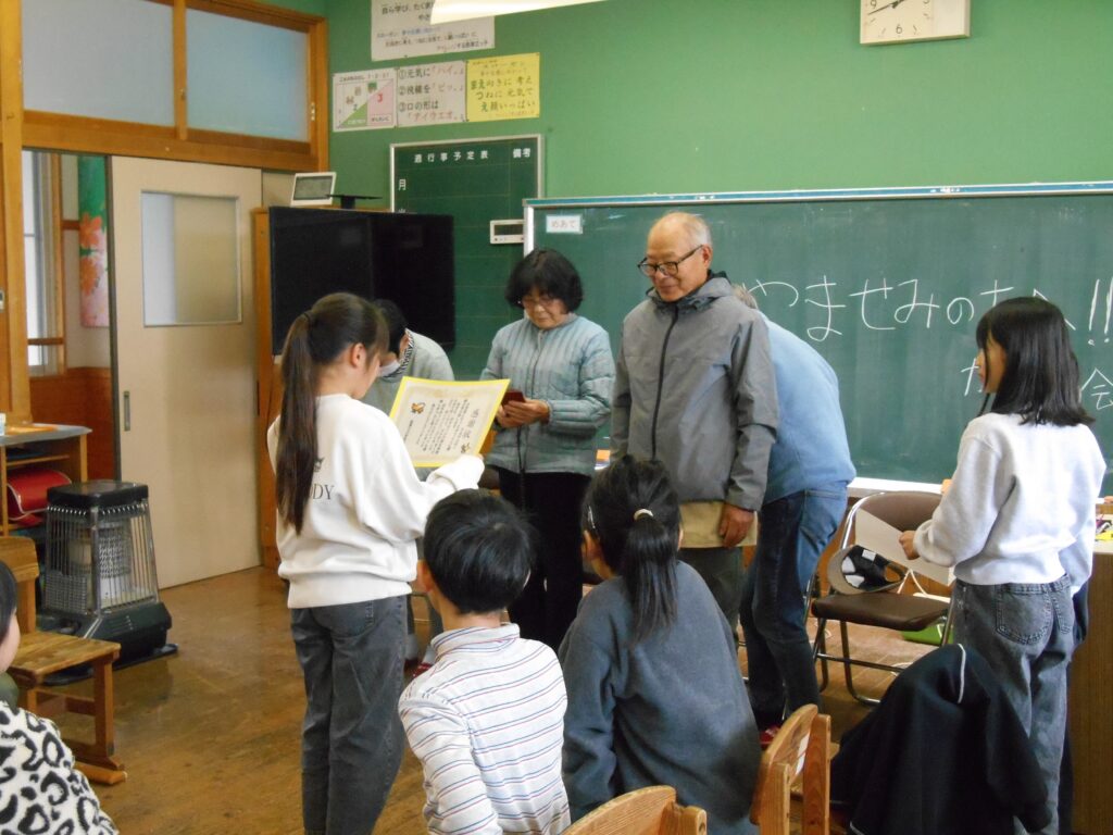12月12日(金)、4年生が、10月にはちみつ採集の体験をさせていただいたお礼に、「やませみ」の方をご招待しました。4名の方が学校まで来てくださいました。4年生が、リコーダー演奏を聞いていただいたり、プレゼントを渡したりしました。最後に、『感謝状』をお渡ししました。お世話になった方たちに、感謝の気持ちが伝えられたのではないかと思います。ありがとうございます。