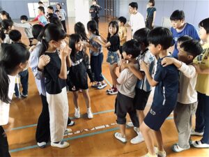 5月28日(水)にスマイル集会が行われました。今回は「他の学年の人と仲良くなろう!」をめあてに「じゃんけん列車」を行いました。全校のみんなで仲良く笑顔で活動していました。