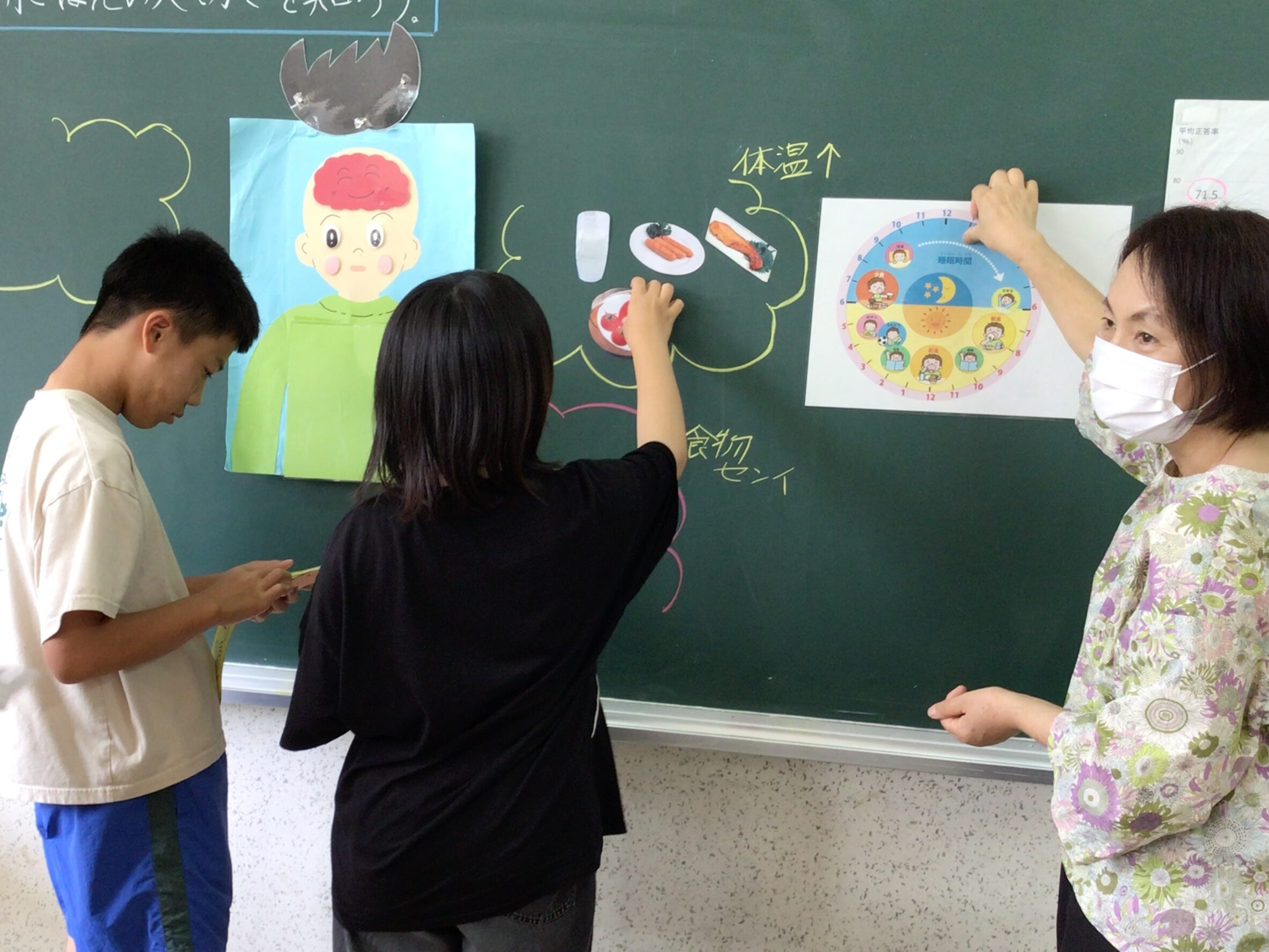 古野栄養教諭にお越しいただき、朝ご飯の大切さについての授業を行っていただきました。