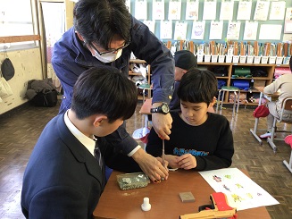 1/16(木)に津久見高校生産機械化の先生、生徒さんが青江小に来てくださり、4年生を対象に体験授業を行ってくれました。缶バッジやハンコの制作や、3Dプリンタを使ってのネームプレート作成など、普段あまり見ることのない機会に児童も興味津々。とても貴重な体験ができました。世界に一つだけのオリジナル作品が完成してうれしそうでした。