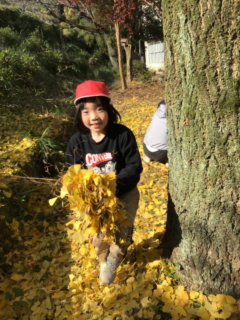 校長室前のイチョウの木が、きれいに色づきました。風で舞い降りた葉っぱで一面黄色のじゅうたんが敷かれたようになります。毎年子どもたちは、雪合戦ならぬイチョウ合戦?!でイチョウ遊びを楽しみます。あったかなかったかわからなかったような今年の秋ですが、ほんのひととき、体いっぱい使って秋を感じる遊びを楽しみました。