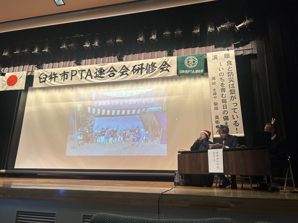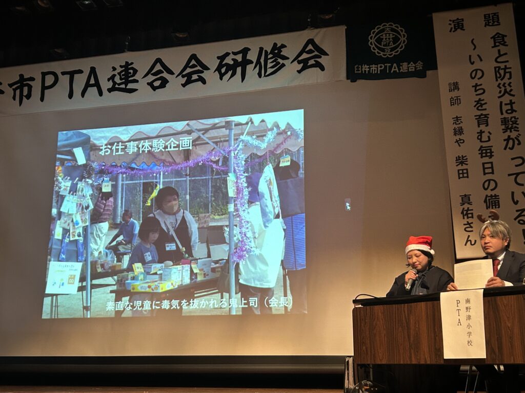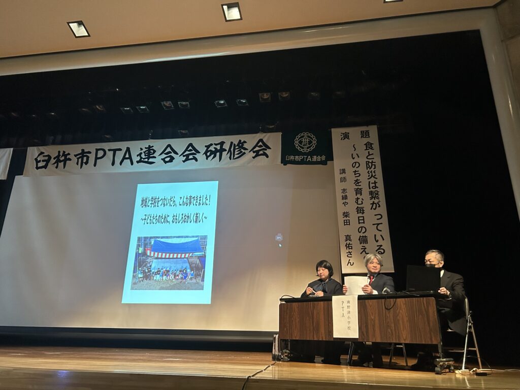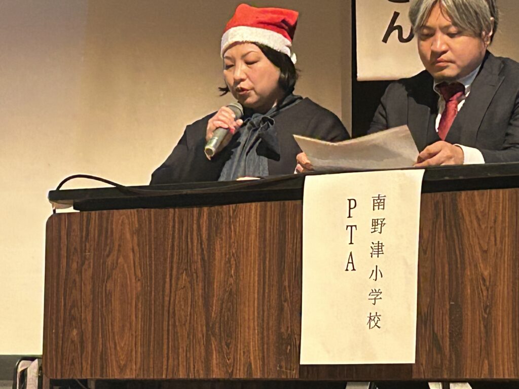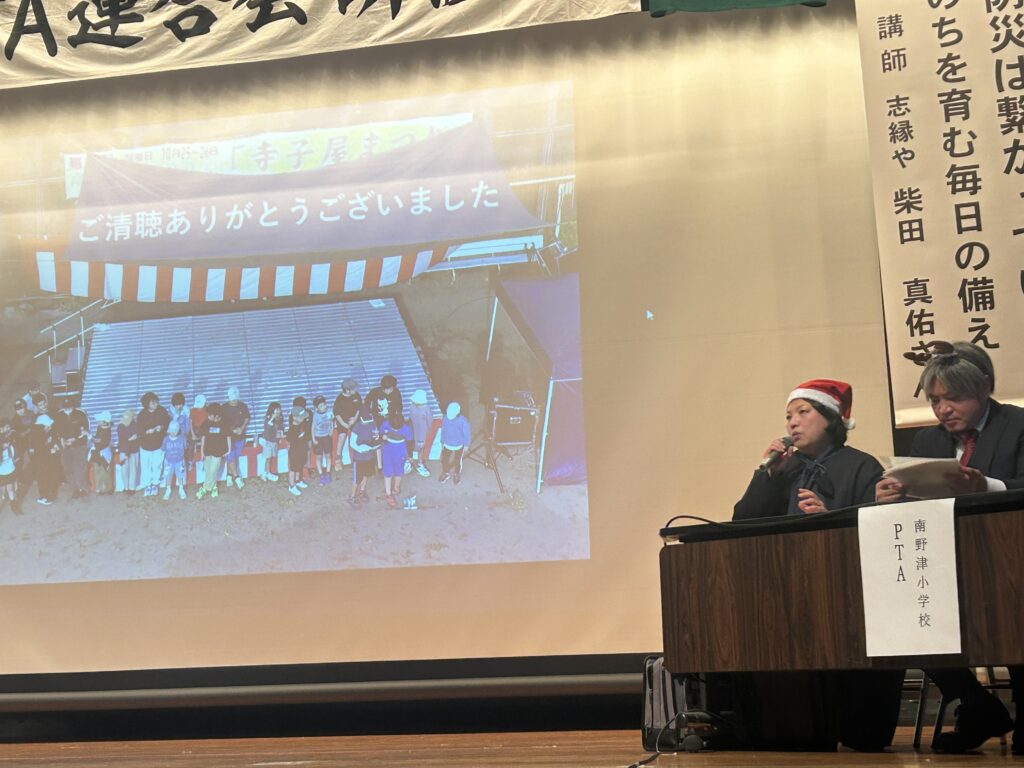 日曜日に、野津中央公民館で、臼杵市PTA連合会研修会が行われました。今年は、南野津小PTAと野津中PTAのレポート発表の番!ということで、着々と準備を進めてくださっていました。当日は「地域と学校をつないだらこんなことできました!~子どもたちのために、おもしろおかしく新しく~」と題して、地域振興協議会「寺子屋まつり」に、悩みながらもみんなで頭をひねり試行錯誤しながらどのように関わっていったかを、丁寧に発表してくださいました。「寺子屋まつり」を、どれだけ地域の方が大切にしてきてそれに応えるように保護者・OBが関わってきたかよくわかりました。何度かくすりと笑わせてくれる場面もあり、南野津小の保護者の結束力の強さをアピールできた素敵な発表でした。これまでの準備、当日ステージでの発表、本当にお疲れ様でした。