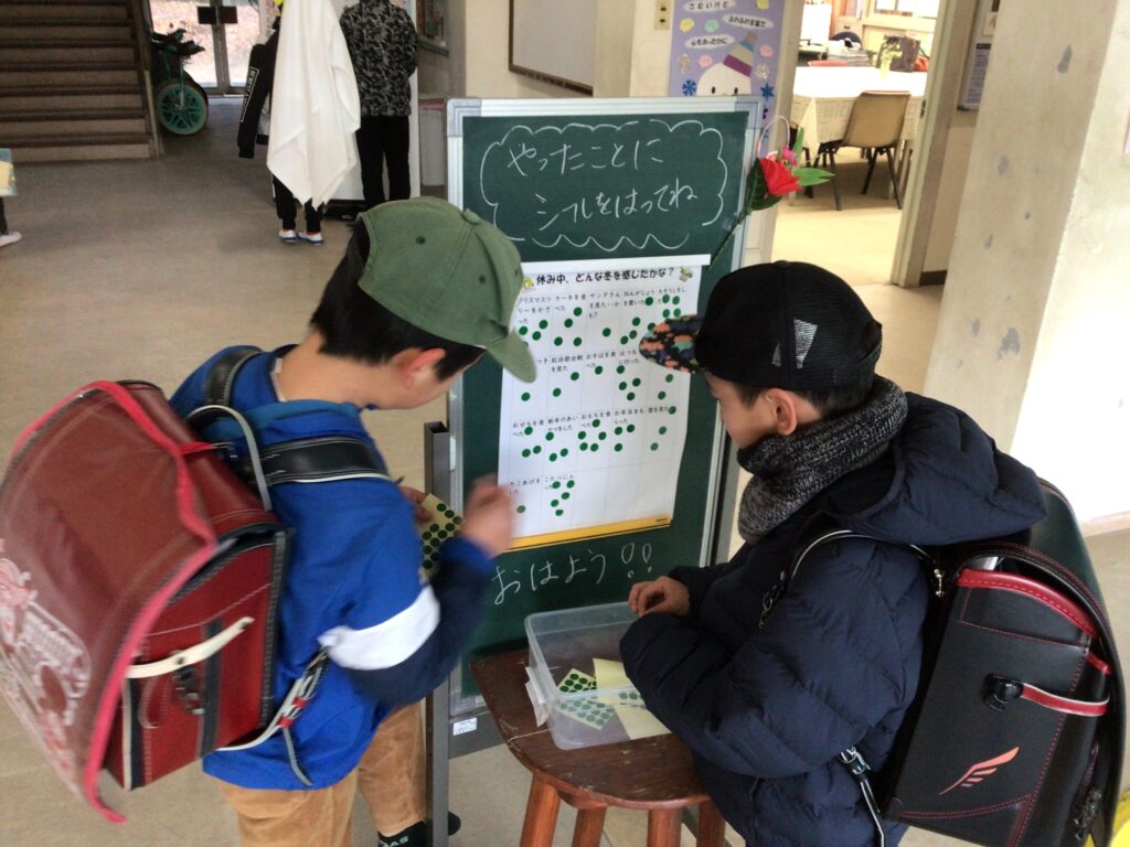 始業式では、3学期意識していってほしいことをお話しました。子どもたちはにこにこと穏やかな顔で話を聞いてくれました。学年代表の発表では、冬休みの思い出と3学期がんばりたいことを緊張しながらも一生懸命発表する姿がありました。終業式の学年代表の言葉も立派でしたが、今回もみんなよくがんばりました。発表していない人も、3学期の目標があると思います。3学期はあっという間に過ぎていきます。一日一日を大切にしながら、みんなで、成長していきましょう。