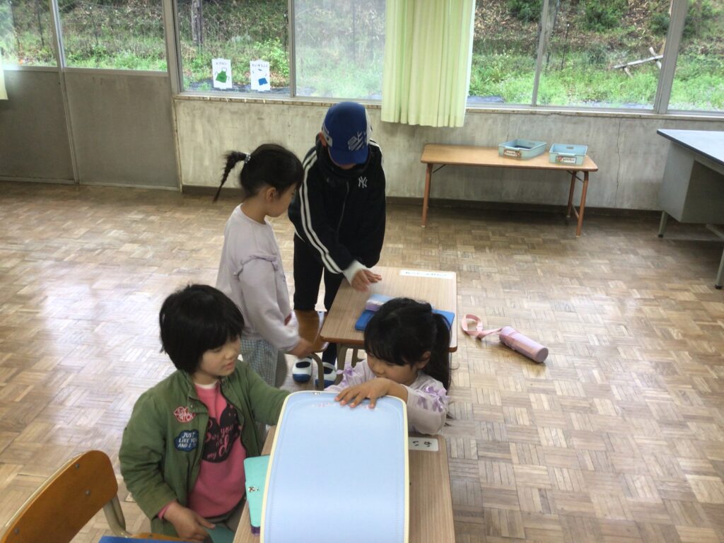 金曜日に入学式を終え、今日から小学校生活の始まりです!上級生が早速、朝の準備のお手伝い。自分でできるようになるようにと、やってあげるのではなく、優しく教えてくれていました。さすが上級生!1年生の二人もしっかりと準備できました。朝の集会もよい姿勢でしっかりと話を聞いていました。それでもドキドキの始まりだと思います。困ったことがあったらなんでも言ってくださいね!